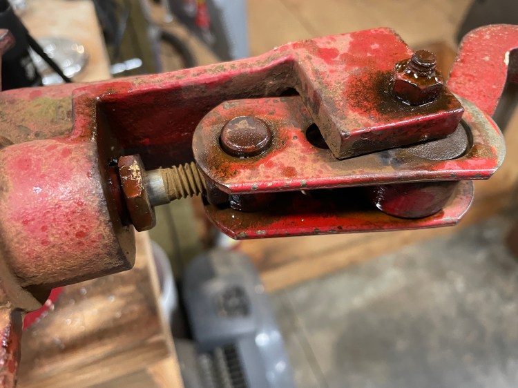 Disassemble everything. Rust penetrant, like what I use, is your friend here. Spray it on and let it soak. Remove the bolt holding the handle, the two side plates, the nut/swivel collar/nut (noting where on the threaded rod this is sitting so you can put the new parts back in the same place) and the packing nut. If you’re lucky, you’ll also be able to remove the o-ring and packing in one piece. Both my packing and o-ring had disintegrated so I had to dig out as much as I possibly could with a small screwdriver so that the new packing would have a clean surface to go into.